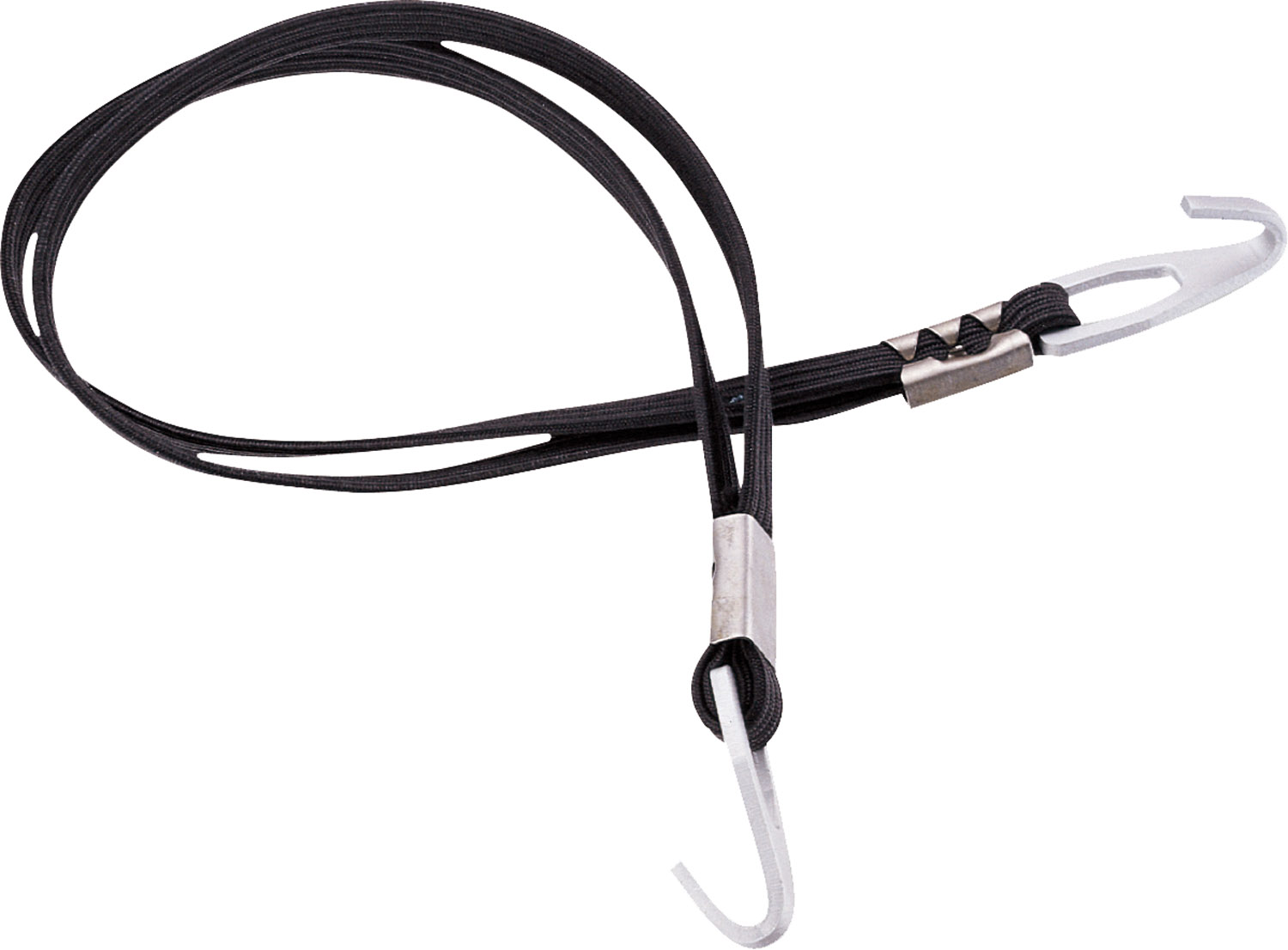 Rugalmas dupla rögzítőpánt csomagtartóra. Az univerzális alumínium kampók segítségével a legtöbb csomagtartótípushoz használható. Hossz (laza állapotban) 580 mm.