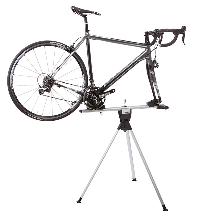 - Az integrált kerékpárállvány kényelmes kerékpártartóként és munkaállványként is funkcionál