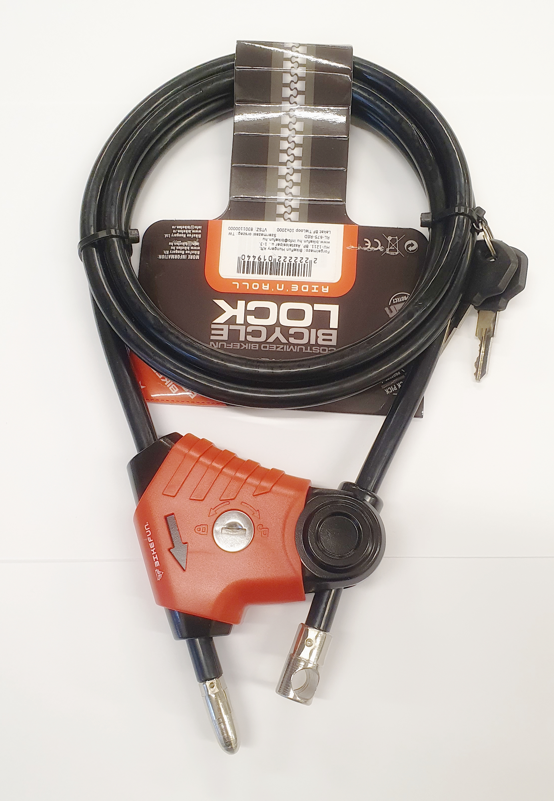 Piros színben. 10 mm átmérőjű, 2 m hosszú kábellakat, kulcsos, duplahurkos rögzítési lehetőséggel.