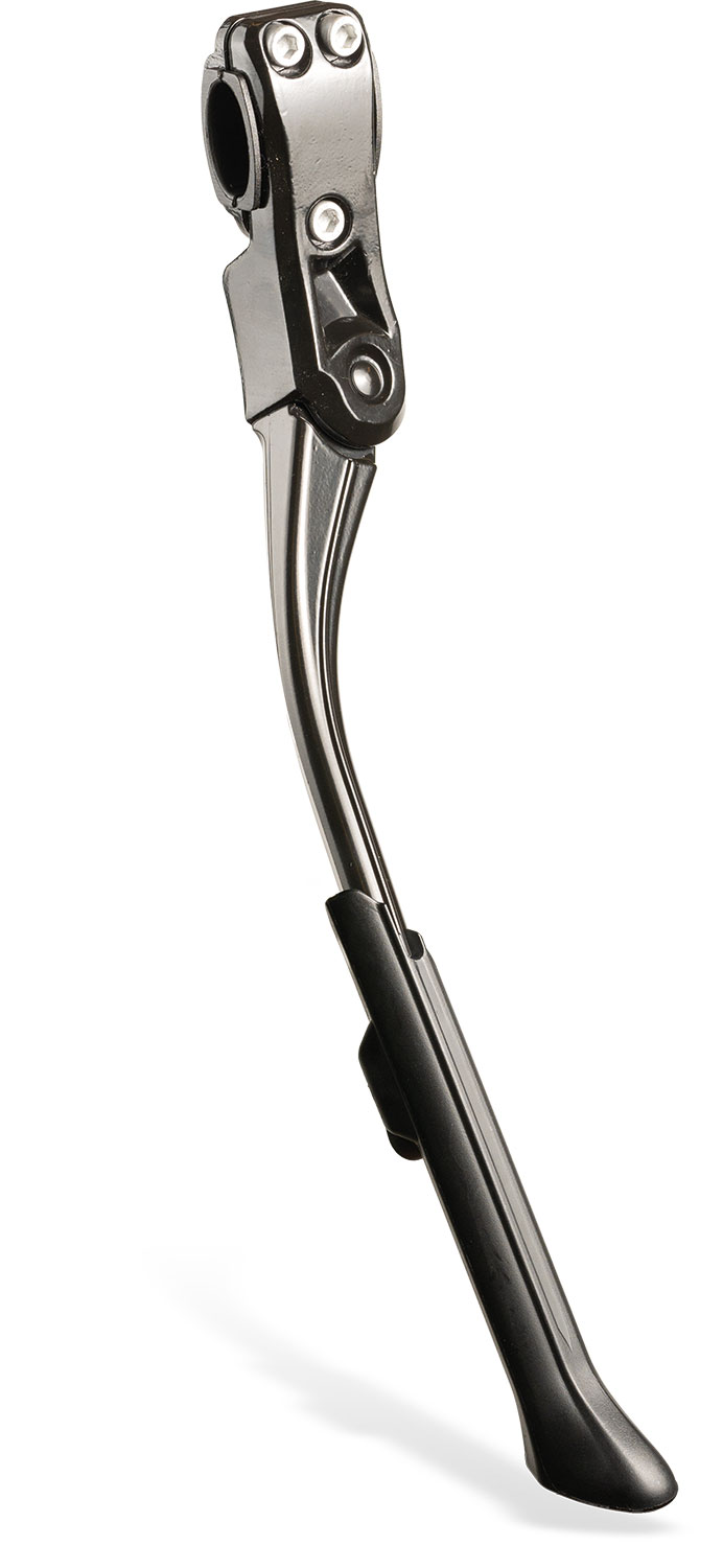 Univerzális, láncvillára rögzíthető alumínium oldaltámasz, 24"-29"-os kerékpárokhoz. Egykezes, szerszám nélküli beállítás. Tömeg: 316 g.