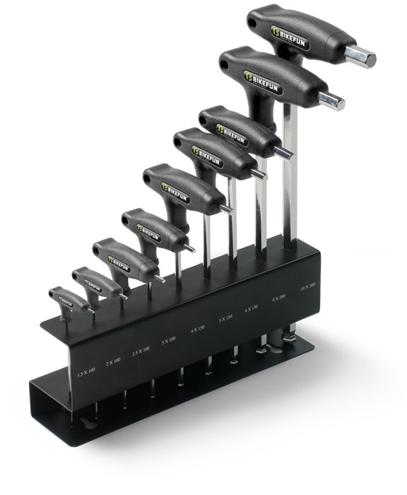 Méretek: 2/2.5/3/4×100 mm, 5/6×150 mm, 8/10×200 mm Ergonomikus csúszásmentes „L” markolat • Kerekített szerszámfejek a könnyebb használat érdekében • Tartozék tároló állvánnyal